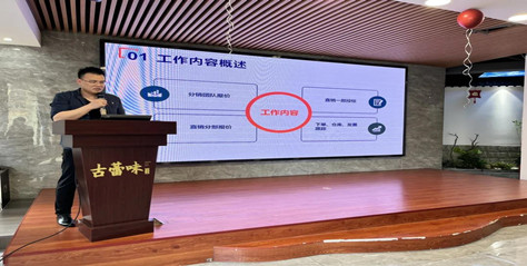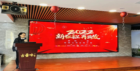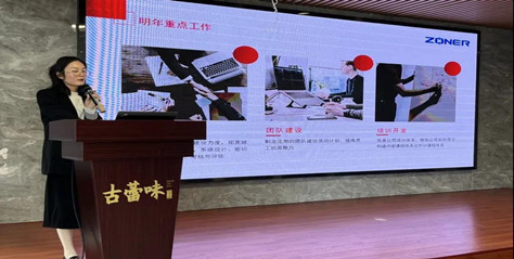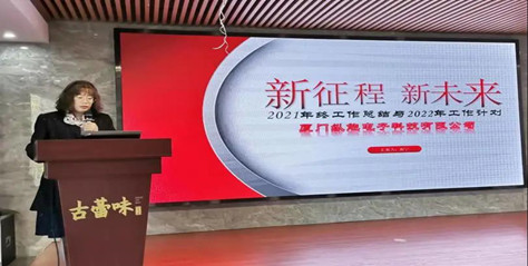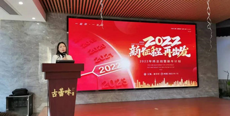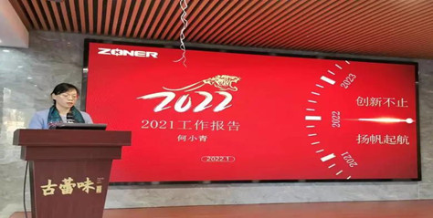 年会中,公司营销部总经理童总率先总结过去一年的业绩数据,并对整年度的数据趋势做分析,针对品牌做业绩统计。接着各部门主管对2021年度工作回顾总结汇报,展望2022年并提出新的工作计划。最后由胡总发表公司2021年工作总结及2022年公司发展战略的重要讲话。