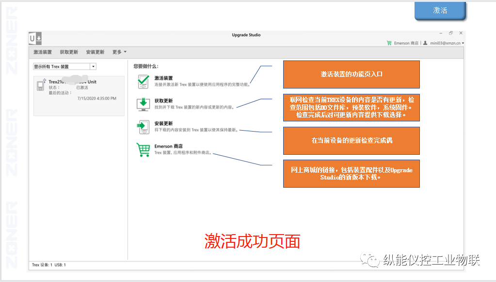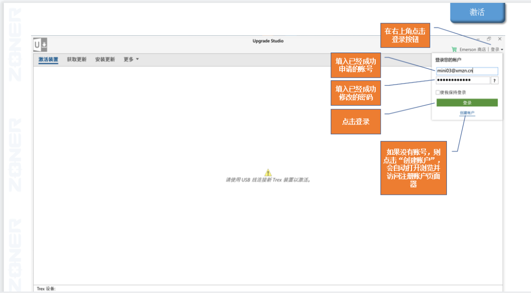 AMS TREX 的激活,升级及今后购买 APP 等都是需要与软件 Upgrade Studio 配合使用的,为了方便今后 TREX 的使用,建议尽早注册 Upgrade Studio 的使用账号。