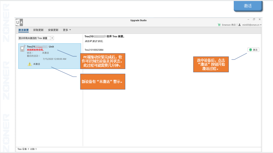 每台 AMS TREX 出厂都是未激活的,需要用户自行完成激活。