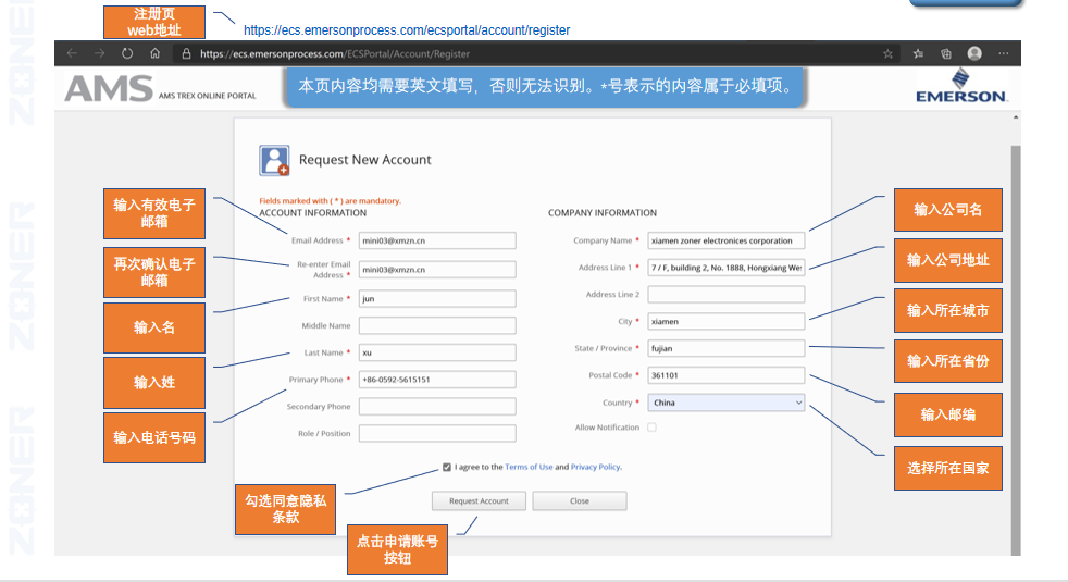 申请帐号的地址如下://ecs.emersonprocess.com/ecsportal/account/register